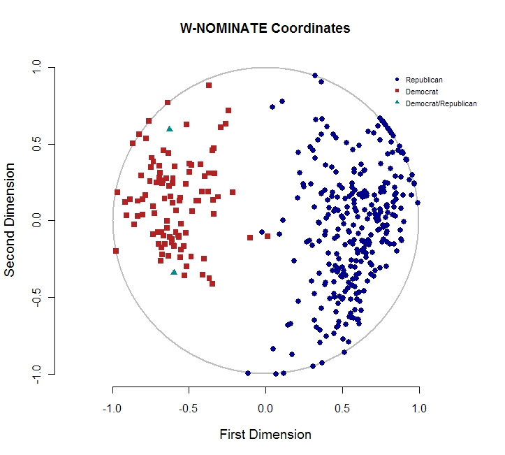 The data is posted on the W-NOMINATE page of my blog. Here's the cool graph (click to enlarge):